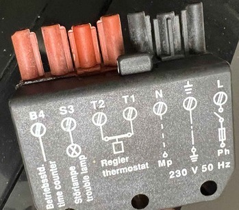 Nur für die Baujahre von Mitte der 80iger Jahre bis 2006. Neuere Ölheizungen können oft auch bedient werden. Wichtig ist, dass sie den unten dargestellten Stecker hat. Zur weiteren Klärung schicken Sie uns gerne ein Foto Ihrer Ölheizung bzw. des Typenschilds per E‑Mail: mail@sparen-total.de